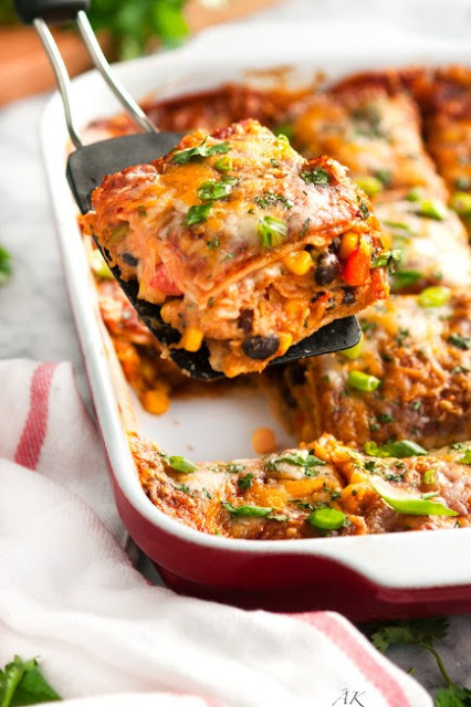 | VEGETÅRIÅN BLÅCK BEÅN ENCHILÅDÅ CÅSSEROLE |